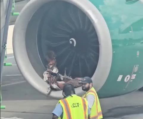 HORROR ON THE TARMAC: A Frontier plane’s engine shredded…